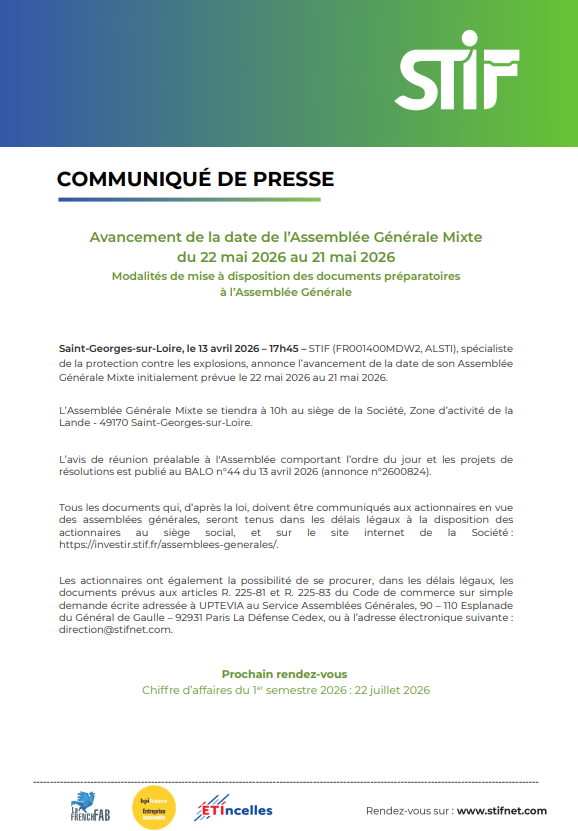 Avancement de la date de l’Assemblée Générale Mixte du 22 mai 2026 au 21 mai 2026
